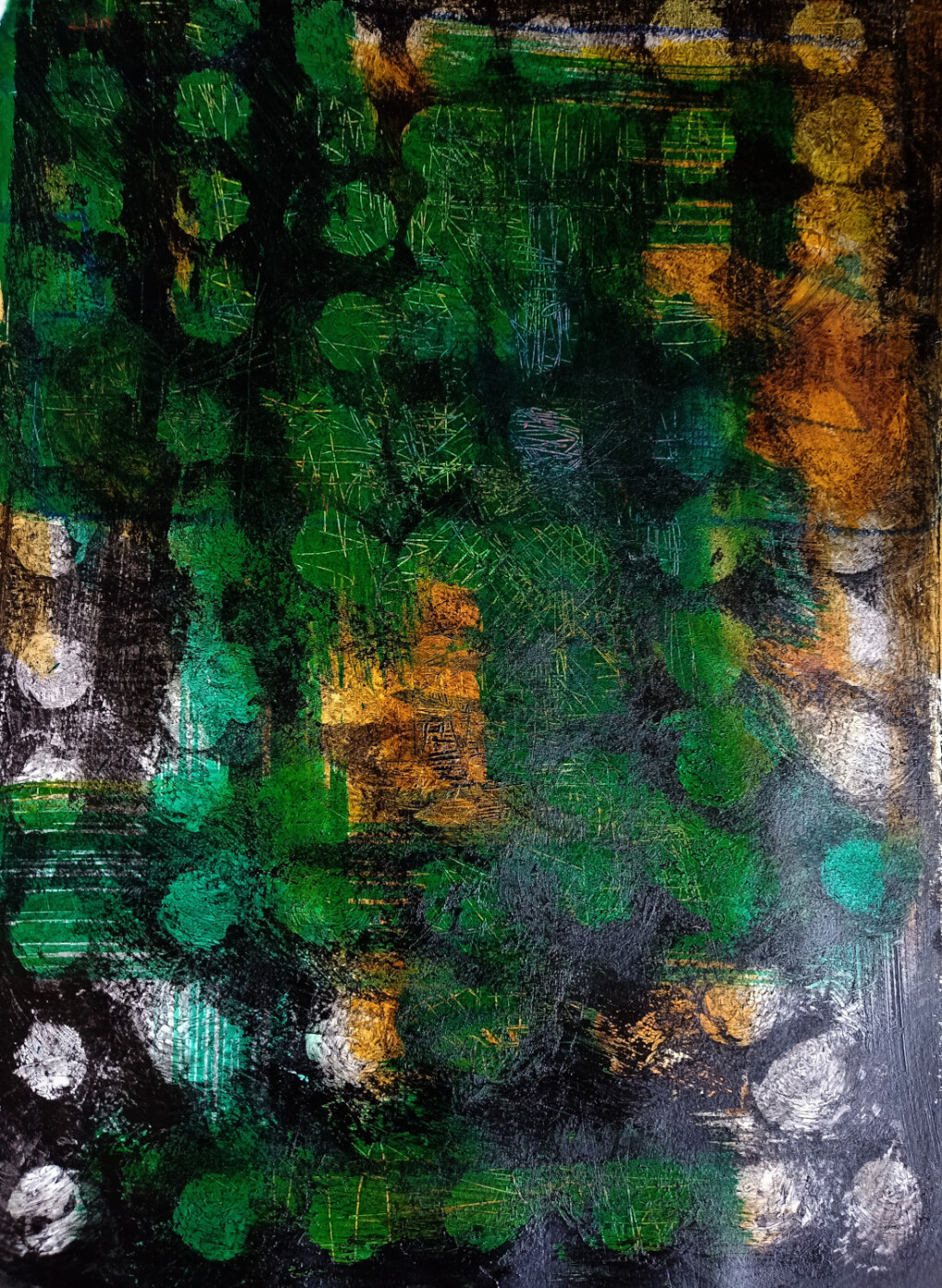 | In der grünen Au, 2024, 57x41, MixArt auf Papier
